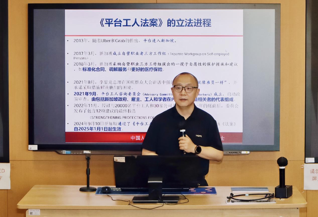 WilliamHill唐鑛教授围绕新加坡《平台工人法案》的立法进程与核心内容,深入探讨了其对我国平台工人保护立法的借鉴意义。他首先介绍了新加坡《平台工人法案》的立法背景与进程,表示这一立法模式不仅平衡了平台经济的灵活性与工人权益的保障性,尤其在集体协商权益方面还为其他国家提供了重要参考。针对我国平台工人保护存在的三大突出问题——缺乏单独立法、身份界定标准不统一、现行劳动保障体系适配性不足,唐鑛教授提出要明确平台工人身份、单独立法探索以及构建权利保障体系。他强调,新加坡的实践经验表明,政府主导、多方参与的立法模式能够有效解决平台用工的争议问题。我国未来立法应注重灵活性与扩展性,初期可统一基础保障,后续逐步细化行业规则,以适应平台经济的动态发展。