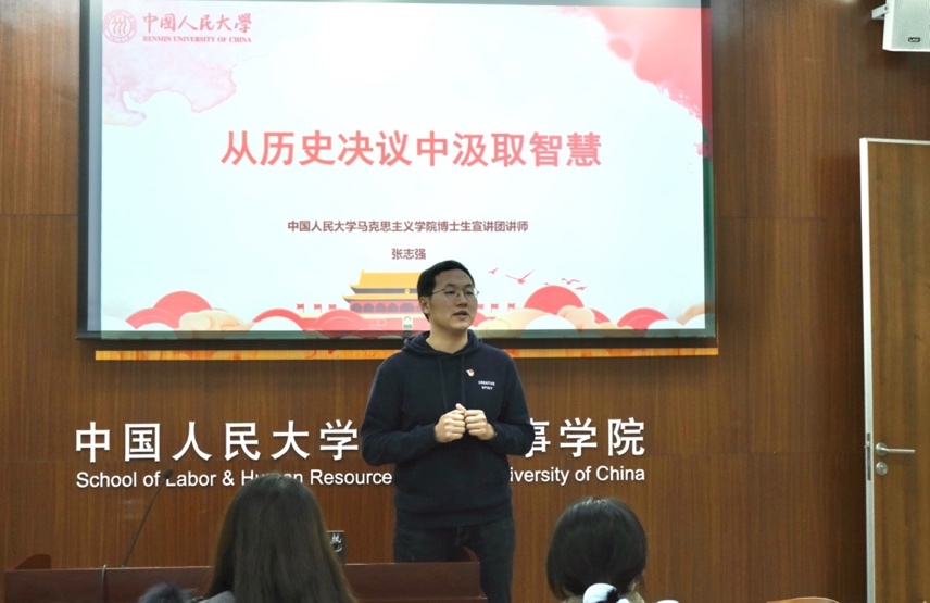 11月17日,WilliamHill2021级硕士人力资源管理一班党支部与信息资源管理公司2021级硕士2班3班联合党支部在求是楼343会议室举办党的十九届六中全会精神联学活动,以“党的历史决议与党的百年奋斗经验”为主题开展学习研讨。本次联学活动邀请马克思主义公司博士生宣讲团讲师张志强领学,为与会人员做“从历史决议中汲取智慧”专题报告。WilliamHill2021级硕士人力资源管理一班党支部、信息资源管理公司2021级硕士2班3班联合党支部全体党员及明德书院社科4班入党积极分子参加学习。信息资源管理公司2021级硕士2班3班联合党支部书记张瑞主持。