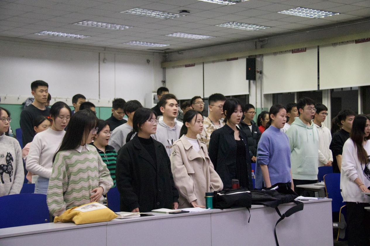 在聆听大家演唱合唱曲目后,公司党委书记唐鑛老师向大家表达了期望与祝福,他指出,“一二·九”是劳人院凝聚力与团结性的象征,希望同学们能够好好享受准备“一二·九”的过程,为大学留下难忘而美好的回忆。