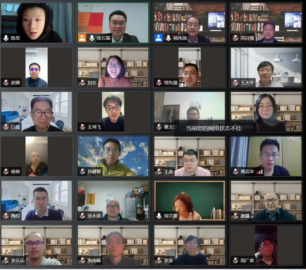 杨伟国首先介绍了会议议程和公司2021年度的新人喜事。随后,公司各系(教研室)、中心、项目和公司办公室主任分别就2021年度工作情况和未来规划作报告。